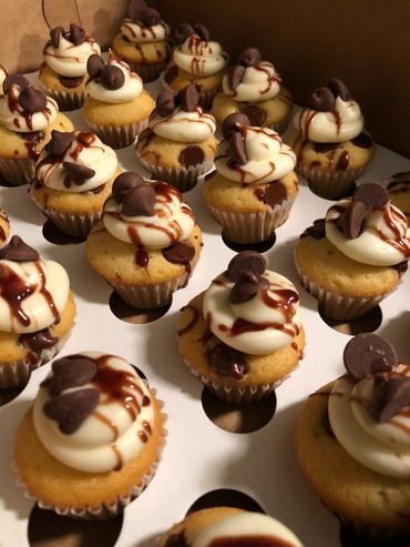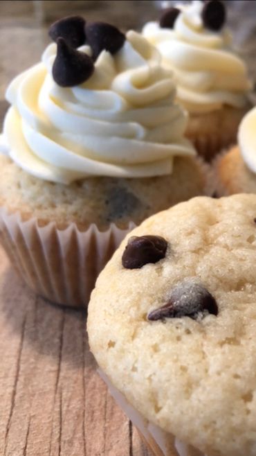Unadulterated bliss in this chocolate chip cupcake, topped with a sweet vanilla buttercream frosting, sprinkled with semi- chocolate chips and drizzled with chocolate ganache.