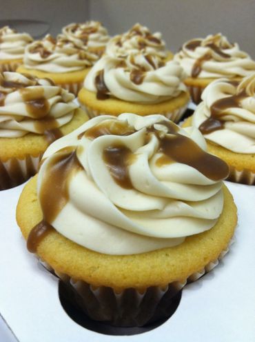 Vanilla cupcake with caramel frosting, drizzled with homemade caramel sauce on top. Smooth yummy goodness.